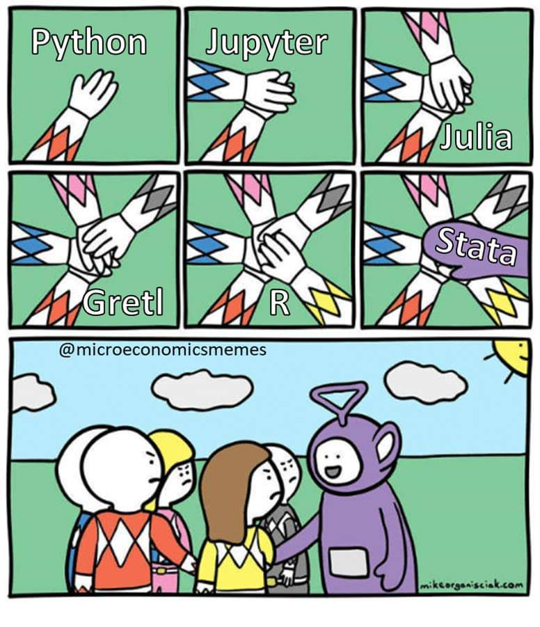 - I’m also interested in ways to ween off economists’ reliance on Stata 🙃